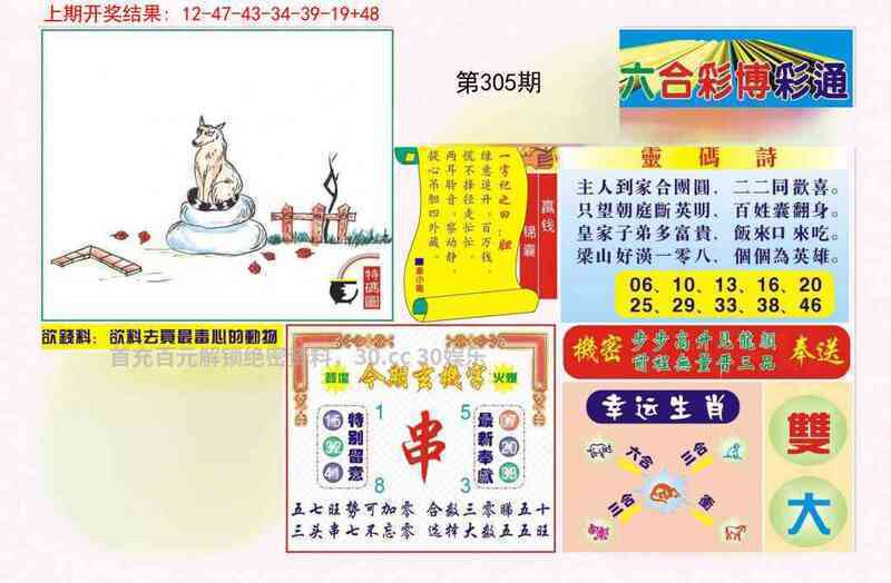 305期:无敌七肖【马鸡羊狗蛇牛】开:鼠42准