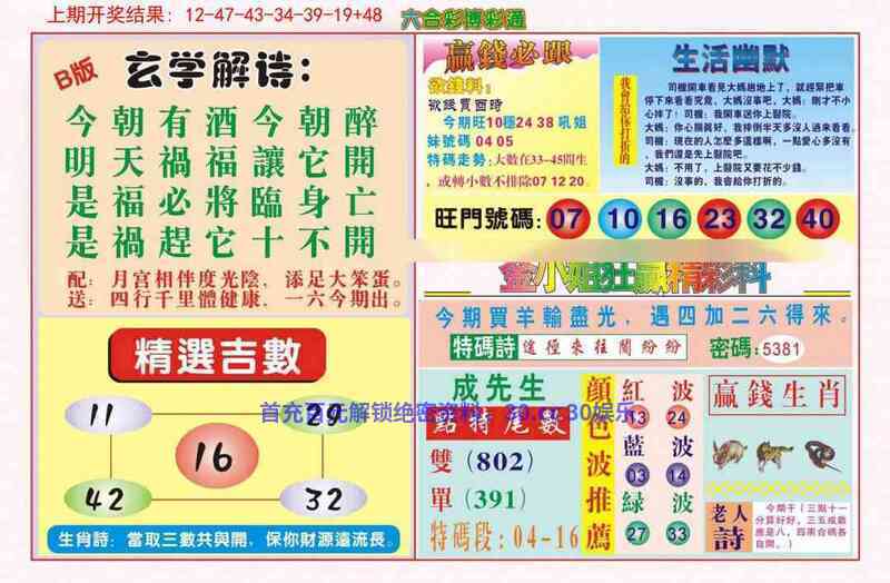 302期:无敌七肖【羊蛇马兔猪鸡】开:猴22准